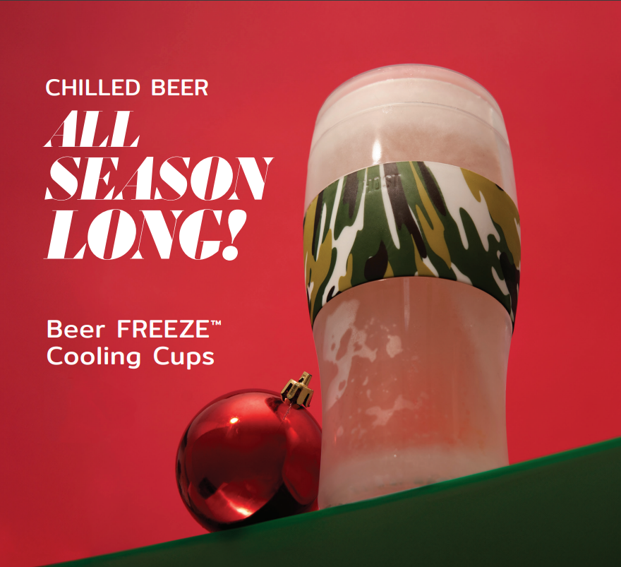 Each double-walled FREEZE product contains a layer of active cooling gel—when frozen, the gel keeps drinks cold for hours.